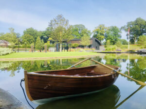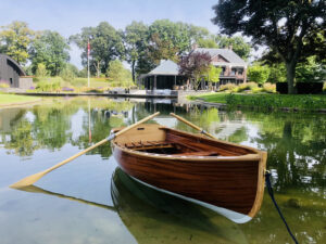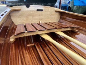 Klassiek gelijnde overnaadse roei jol, gebouwd in opdracht van een architectenbureau.
