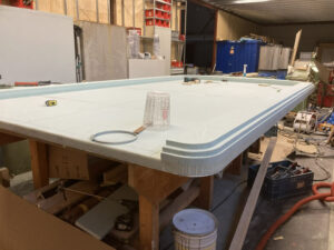 Het is vervaardigd uit gerecycled PET-schuim, glasweefsel en epoxy, en afgewerkt met een slijtvaste DD-lak.